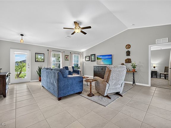 LIKE BRAND NEW! BUILT IN 2023 3 BEDROOM, 2 BATH, 2-CAR GARAGE POOL HOME in the deed-restricted community of Burnt Store Village. Step inside where you will find an open floor plan with contemporary décor and lighting, high ceilings, crown molding, and ceramic tile throughout. The kitchen offers white cabinetry complimented by granite countertops, tile backsplash, stainless steel appliances, closet pantry and large island great for entertaining. Spacious primary suite features ample natural light, his and her walk-in closets and private en-suite bath featuring dual sinks and walk-in tile shower. Split floor plan provides privacy for guests with two additional bedrooms and separate full bath. Outside enjoy the screened lanai with the heated pool/spa overlooking the private backyard with greenbelt and pond views. Northwestern exposure to enjoy gorgeous SWFL sunsets. Nicely landscaped exterior with paver driveway, walkway and lanai for added curb appeal. Additional features include a laundry room, hurricane impact windows, irrigation system, hot tub, and epoxy coated garage flooring. The location of this property is unbeatable, just 20 minutes from downtown Punta Gorda and 30 minutes from downtown Fort Myers. Additionally, it's close to the relaxed waterfront community of Burnt Store Marina, offering access to resort and golfing facilities, waterfront dining, and entertainment. It is conveniently located to the airport, restaurants, shopping, beaches, and award-winning fishing and boating. Don't miss out on this opportunity! Schedule your private showing today!