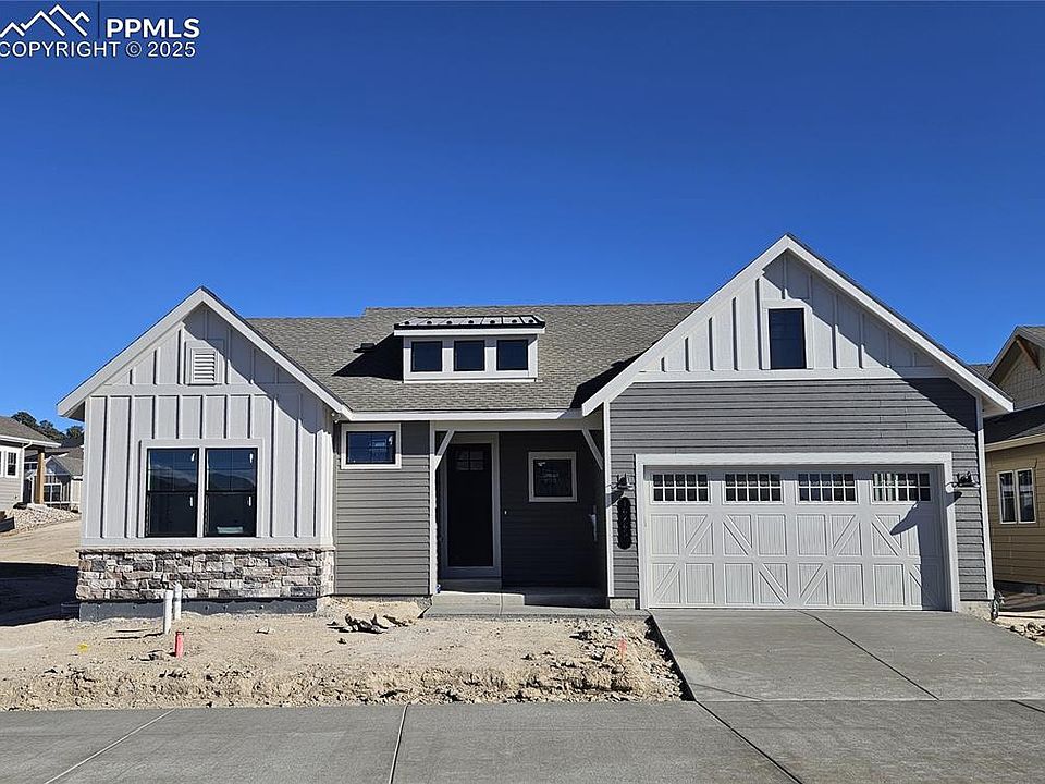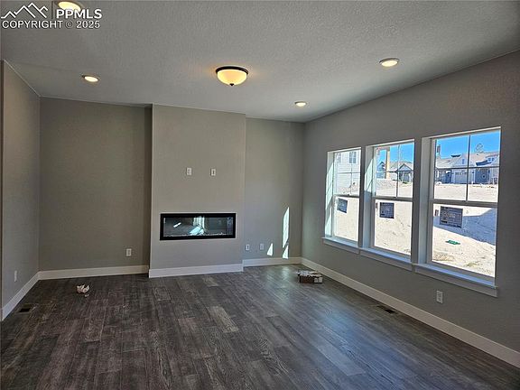 Discover the Stunning Summerton – Luxury Living Redefined! Experience elevated Colorado living in the exquisite Summerton—a home that perfectly blends luxury, comfort, and modern design. This thoughtfully designed floor plan showcases 9’ ceilings on both the main and lower levels, engineered hardwood flooring, and an open-concept layout ideal for entertaining and everyday living. The designer kitchen impresses with 42” two-tone soft-close cabinetry, 3cm quartz slab countertops, under-cabinet lighting, subway tile backsplash, and premium GE Café stainless steel appliances, including a gas range, microwave, and dishwasher. Enjoy stylish touches throughout—open railings with iron balusters, modern 5" baseboards, solid-core barn doors (per plan), and a sleek 50” electric fireplace as the focal point of your living space. Retreat to your spa-inspired primary suite featuring a 4-piece bath with rectangular undermount sinks and Delta matte black fixtures. The partially finished basement with a wet bar offers the perfect spot for entertaining or relaxing movie nights. With landscape installation, maintenance, and snow removal included, the Summerton offers a low-maintenance, high-style lifestyle in one of Monument’s most desirable communities—Home Place Ranch.