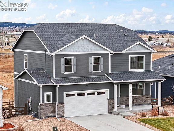 Better than new! Located in the coveted Willow Springs Ranch community, this beauty is ready for its next owner. This home truly has it all featuring five bedrooms, three full bathrooms, an office, a loft, and an unfinished basement. Step inside to find LVP flooring throughout the main level, a generous flex space off the entry, and a striking fireplace in the living room. The main floor also offers a bedroom and full bathroom, perfect for guests. Upstairs, you’re welcomed by a spacious loft ideal for a game room, lounge area, or reading nook. The split-style layout places the primary suite privately apart from the secondary bedrooms, creating a serene oasis to unwind each evening. The additional bedrooms each feature large walk-in or step-in closets, and there is an full bathroom to round out this level. Head down to the unfinished basement, a blank canvas ready to be transformed into whatever your heart desires. With roughed-in plumbing, adding a future bathroom is a breeze.To top it all off, this home has a practically new solar panel system saving you hundreds on your utility bill. Easy access to I-25, shopping and the Air Force Academy come take a look today!