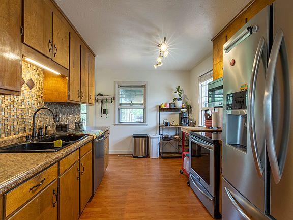 Spacious 4-bedroom, 2-bathroom home featuring hardwood floors, a bright living room, and a kitchen with ample cabinetry and backyard access. The primary bedroom is generously sized, with a main-level bath offering double sinks, tiled shower, and tub. Lower level includes a large family room, office, laundry, and storage. Enjoy a fenced backyard with dog run, covered deck, and 2-car garage.