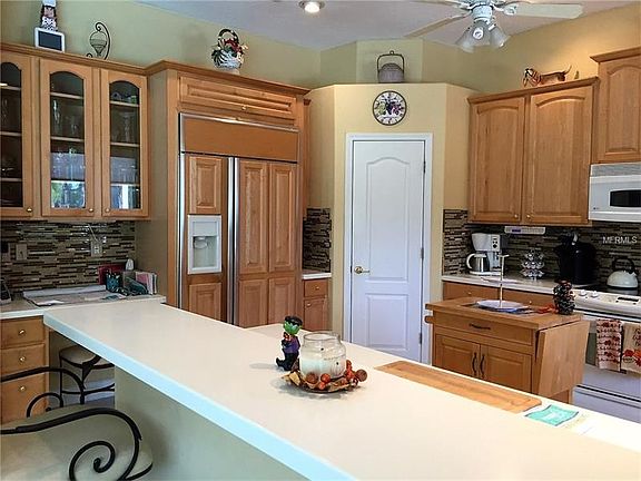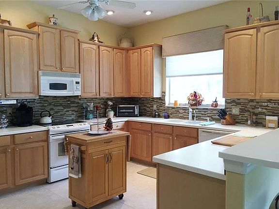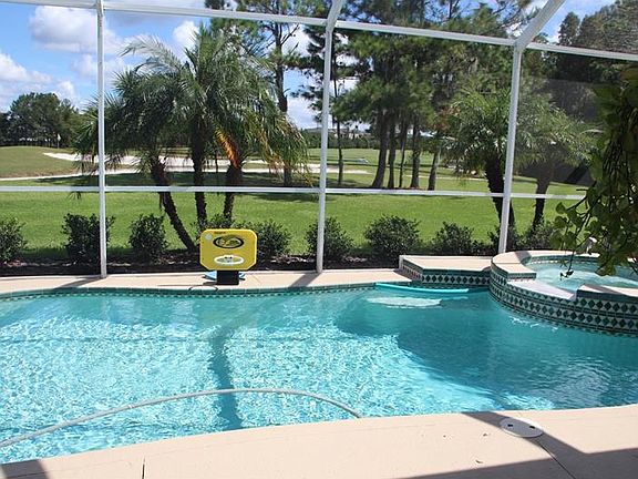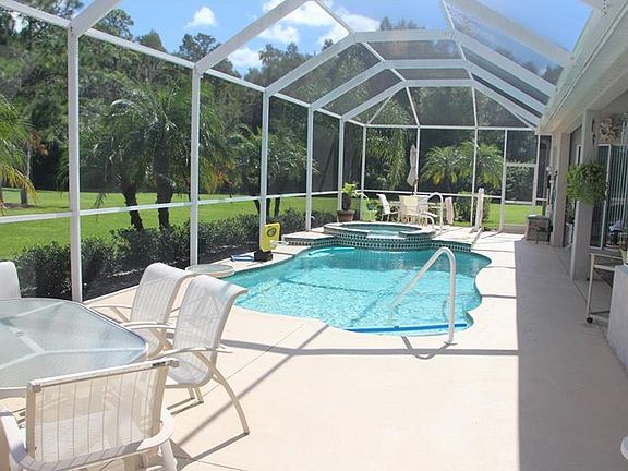 Panoramic golf course views greet you as you enter this much sought after St. Andrews floor plan in Fountain View Estate. You will discover this home is a private, serene oasis - your own piece of paradise. With 3 BR, 2 BA + den, this home features a huge 23x15 eat-in kitchen, 27x18 great room & 60x18 screened lanai w/pool & spa, making it the perfect entertaining home. Kitchen upgrades include Corian counters, raised panel wood cabinetry w/pull out shelves, GE Monogram fridge & Profile appliances plus walk in food pantry, breakfast bar & built-in desk w/glass display cabinetry. The master suite features walk-in closet, tray ceiling, jetted soaking tub, walk in shower & dual vanities. Imagine lounging in your own tropical oasis with heated pool & spill-over spa overlooking the 17th & 18th fairways. The pass-thru bar from the kitchen makes entertaining your friends & family a breeze. The magnificent view only adds to the value of this home. Paved drive & walkway, custom leaded glass entry, tropical landscaping, new carpet & paint are just a few of the amenities this home offers. Situated on a quiet cul-de-sac, this home has an oversized three car garage w/storage cabinets, 2nd fridge, work shop. Live the active Heritage Springs lifestyle: Clubhouse with pool, spa, activities, fitness center, tennis, restaurant, lounge, theatre, entertainment, billiards room, arts & crafts, library w/computer center and don't forget the 18 holes of Championship golf. CDD included in taxes