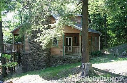 Private lakefront cottage on one of America's cleanest lakes, located in the Finger Lakes Region of Central New York. Plenty of room for a family getaway and for entertaining. This home was built in 1998 as a year round home, completely insulated and with baseboard heat. However, most would consider the 1 mile private gravel road to be for seasonal use. This is truly a getaway, located deep in the woods, but with all the modern amenities you would expect for rustic, elegant living. *Huge decks overlooking Skaneateles Lake *200 feet of private lakefront with seasonal dock. Stone slab lake bottom (with no weeds). *Stone & Cedar Exterior *Wall-to-wall, floor-to-ceiling stone fireplace *Hardwood Floors milled from trees on the site *Stainless Steel kitchen appliances-oven, cook top, refrigerator/freezer, dishwasher, built in microwave *tile counter top *Anderson windows and doors *Antler chandelier over Stickley dining table *2 year old high quality lodge-style furnishings *Master Loft with full staircase, bathroom and reading area *Kids room with bunk beds and adjacent full bath *Two guest rooms on first floor with family room including floor-to-ceiling stone wall and wood stove *Receiver, ipod dock, and speakers for sound through the house and decks *laundry room with washer, dryer, utility sink *Hot Tub new in 2009 *Multi-level decks leading to lake *View our web-site www.clearwatercabin.com Great rental income! ** Furniture, light fixtures and appliances included in sale **Aluminum Dock System included in sale **Window air conditioners (3) included