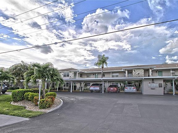Rare Gulf of Mexico access waterfront condo. under $200K-enjoy your gorgeous, relaxing view. For all ages-this rare unit is not an age restricted condo - JUST REDUCED! First timers starting out wanting a property they can build equity in (split bedrooms so you can take on a roommate to help pay for your investment), a rental property also building equity until you move, those craving a 2nd home away from the cold winters, or those who have raised a family & it is their time to enjoy fabulous waterfront living. The master bedroom has a huge walk in closet with plenty of mirrors for your selfies! The second floor end lanai overlooks the beautiful waterfront yet affords security & privacy. The little front room is ideal for an office, sitting area or extension of the kitchen & has a breakfast bar & generous galley kitchen. A pass-through allows for easy serving in the dining & living room when entertaining. The second bedroom has the guest bathroom & includes a large laundry/work room. Covered parking is available for up to two cars & small pets & rentals are ok. Now vacant, you can have a quick closing. Remember, waterfront properties are becoming more expensive & scarce!