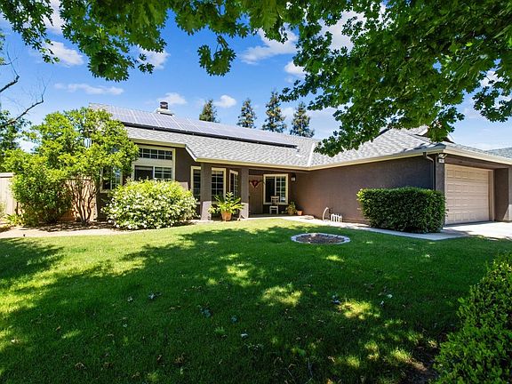 Large corner lot with short walk to a park! The bright, spacious kitchen opens to the dining room with views of the tranquil yard. There are 2 living areas- living room and the game room with ceiling fan and french doors leading to the sparkling pebble-tec pool and above ground spa. The pellet stove heats most of the house in the winter &keeps heating bills down. A leased solar system keeps electric bills low. The large master bedroom has its own private area for an office or gym or sewing area, or whatever you would like! 3 car garage offers ample room for cars, toys or tools. A shed and plenty of space for a boat or RV parking w/access from the side yard. Clovis schools, new paint on outside, new rain gutters, new fence, newer air conditioner with new vents and a whole house fan. This is a great opportunity to live in a much desired neighborhood in Clovis. With a full price offer, seller will leave the 80 TV, washer/ dryer and 2 refrigerators at no value.