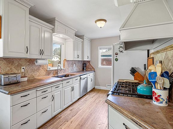 Welcome to this spacious 5-bedroom, 2-bath brick home offering 2,746 sq ft of comfortable living space. This well-laid-out home features a versatile floor plan with two bedrooms and a full bathroom on the main level, two additional bedrooms and a second bathroom in the basement, and a fifth bedroom upstairs—perfect for guests, a home office, or hobby space. Large windows throughout the home fill the rooms with natural light, creating a warm and inviting atmosphere. A cozy wood stove adds charm and efficiency to the living space. Step outside to a beautifully landscaped backyard complete with fruit trees and berry bushes—ideal for gardening, entertaining, or simply relaxing in your own little oasis.