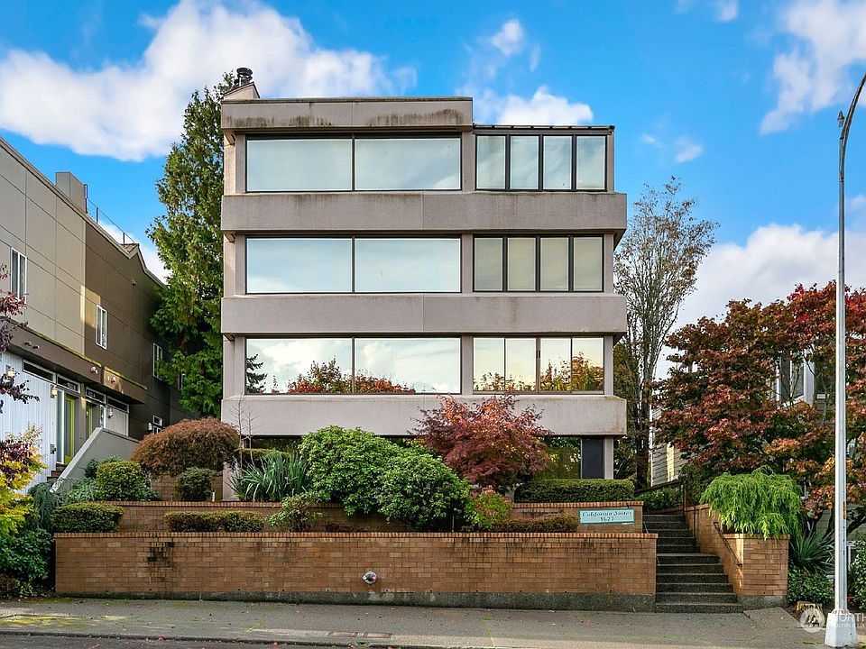 Mid Century style abounds in this spacious North Admiral condo! Rare 4 unit building w/just one unit per floor & big windows on 3 sides. Beautiful, newly finished hardwoods, new laminate flooring & fresh paint throughout. Big kitchen w/granite counters, stainless appliances, a dining nook & pantry storage. Large dining room, BIG living room w/period stone fireplace. Primary suite w/5 piece bath & 2 separate vanities. Elevator from lobby goes directly into unit for privacy/convenience. Individual garage off alley, across pool deck from main building. Big storage room in the basement provides add'l storage. Great location near Metropolitan market, coffee/restaurants, Admiral Theater, and located just 2 blocks from Hamilton viewpoint park.