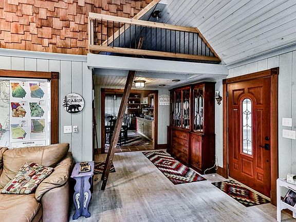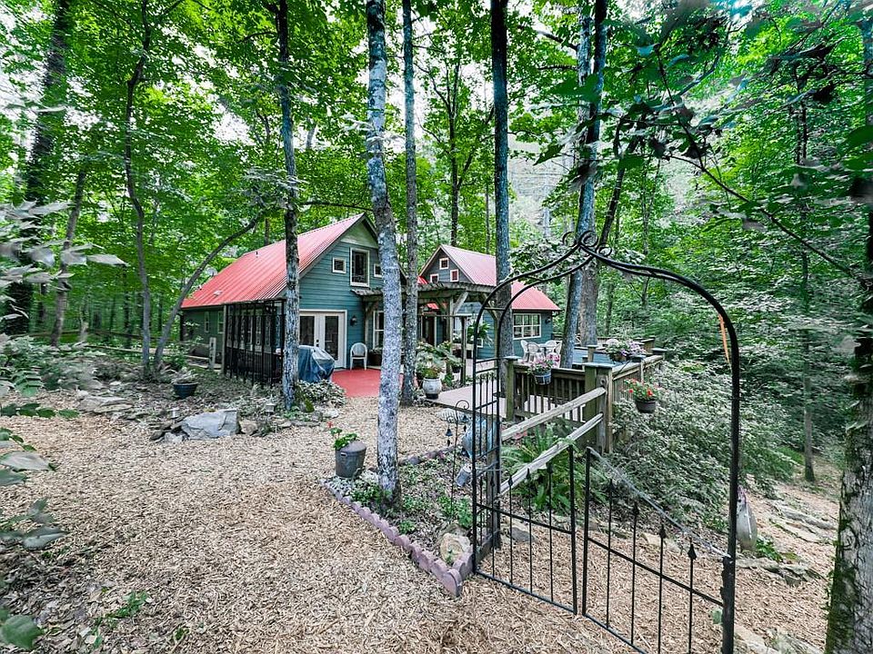 Located in the Beautiful Mountain Community of Talking Rock Creek Resort. Home features open floor plan, fireplace, master on main and 2nd bedroom. Large loft upstairs and small loft on the main floor. Beautiful stain glass windows. Relax and enjoy Long Branch Creek from the upper screened porch or abundance of decking around the cabin. Lots of creek frontage. Plenty of parking and storage. Whether you are looking for a permanent home or 2nd home or an investment property. Available for rental program. Community shared amenities include playground, tennis courts, swimming pools, basketball, fitness center. Convenient to Carters Lake and Ellijay, Jasper shops and restaurants. Trout Lodge, low HOA fees. Entire contents of home included on a separate bill of sale. Very peaceful.
