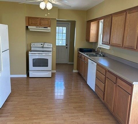 Here you go! Sharp ranch in move in condition. Living room has wood flooring, which was installed 2 years ago as well as a ceiling fan. The 3 bedrooms have brand new carpet. Kitchen is remodeled w/ MCL cabinets, range, hood, dishwasher, refrigerator, wood floors, ceiling fan, and garbage disposal. Other updates: Utility room 10x5. Updated bath with tub and shower. Furnace and Air conditioning installed new in 2023. New roof being installed. Gutters replaced 2015. 6 paneled doors. Replacement windows. Updated electric service. Fenced yard. 22x10 covered patio. Driveway to be resealed.
