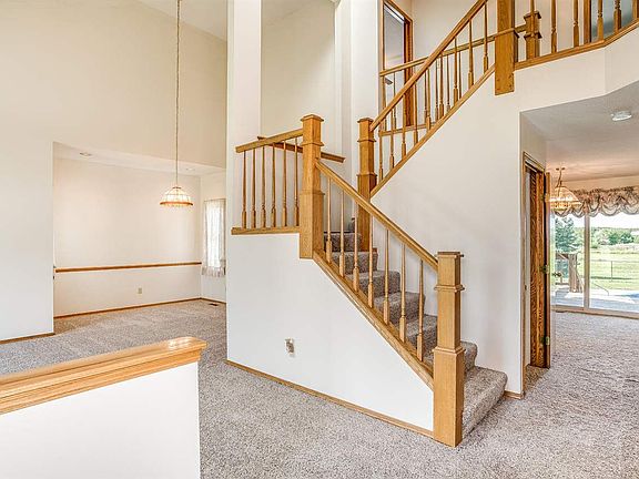 Nice home on 9.6 acres in the country, on a paved road! Three-car insulated garage with openers and keypad entry. Main floor laundry. Beautiful in-ground pool with automatic cover. Tiered wood deck. New HVAC, new Rolox windows, new vinyl siding, new main floor frieze carpet, new hot water heater. Living room with soaring vaulted ceiling. Big country kitchen with a breakfast bar, pantry, desk, stove, dishwasher, fridge, and two Lazy Susans. Opens to a main floor family room with a woodburning fireplace. Step out the patio door to a two-tiered deck and the swimming pool. The spacious master bedroom has an attached bathroom with a whirlpool tub, separate shower with seat, dual vanities, and a walk-in closet. Four bedrooms and 2 1/2 bathrooms up. Partially finished basement. Two bedrooms with daylight windows (the carpet was removed, needs to be replaced) and a full bathroom. Big storage space with shelves and a workbench (gun safe remains with the home) A 14 by 26 foot area with an escape window could be made into additional bedroom or a rec room. A lot of home and acreage. Room for horses. Don't miss this one!!