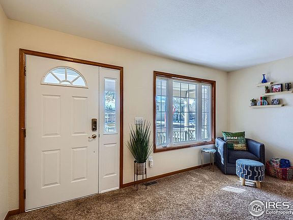 Charming, move-in ready home with modern updates and ideal location! Don't miss this beautifully updated 2-bedroom, 2-bathroom home, designed for comfort and convenience. Inside, enjoy fresh new paint throughout, creating a bright and welcoming atmosphere. The spacious great room is perfect for gatherings, while the kitchen, with plenty of counter space and storage, makes meal prep a breeze. Relax in the large primary bedroom, offering plenty of space to unwind, and a private bathroom for added convenience. This home is built for efficiency, featuring updated windows that enhance insulation and energy savings, plus an updated furnace that ensures comfort year-round. The high-quality Class 4 impact-resistant roof provides long-lasting protection and peace of mind, while the recently updated garage door boosts curb appeal. The full unfinished basement offers tons of storage or potential for expansion to suit your needs. Outdoors, you'll love the private, grassy backyard, where beautiful allium, tulips, and hyacinths bloom in the spring, adding charm and vibrant color. The large covered patio is perfect for relaxing or hosting outdoor gatherings. Plus, the south-facing orientation helps keep snow and ice at bay during the winter months, providing a more comfortable and manageable driveway and walkway.. No HOA means even more freedom, while the home's prime location places you just minutes away from restaurants, shopping, and entertainment. Enjoy easy access to nearby trails, parks, and Boyd Lake State Park, providing the perfect balance of urban living and outdoor recreation. This energy-efficient, move-in-ready home is waiting for you. Come see it before it's gone!
