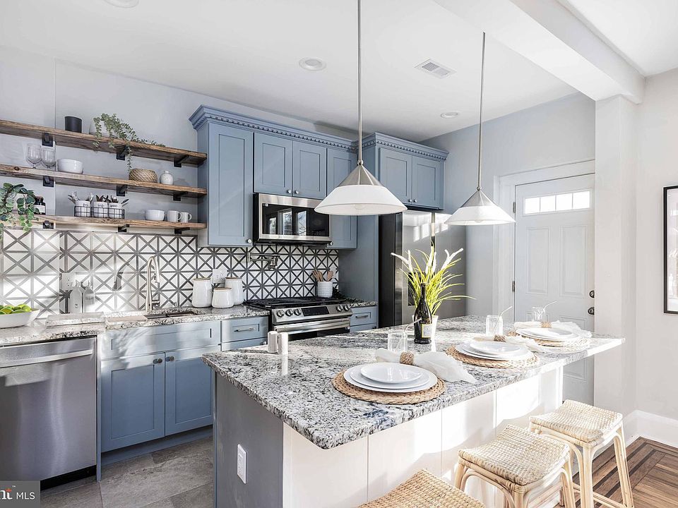 - Kitchen - Galley, Dining Area, Crown Molding, Open Floorplan, 9'+ Ceilings, Dry Wall