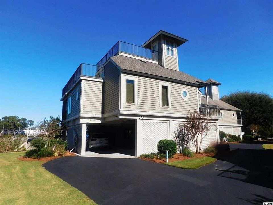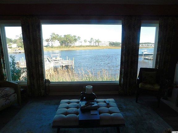 Gorgeous, upgraded, designer furnished 3 BR/ 3 BA direct waterway home in desired after Tidewater Plantation. Home gives you the "WOW" feeling from the moment you enter home detail, upgrades, furnishings, and phenomenal direct waterway views. On Bottom level of home enter on heated ceramic tiled floors and find an auxiliary sleeping, sitting area. Venture from luxury vinyl plank floors of foyer area upstairs to the main living area ( with a large storage closet at top of stairs) and enter a beautiful open, airy floor plan with views to be rivaled by none thru the all new windows which are gigantic in family room to enhance views of the waterway. Family room, dining room, sunroom/office all boasts gorgeous new wood luxury vinyl floors as well as new windows. The dining room and kitchen are open to family room and have tiled screened porch. Kitchen is upgraded with granite counter tops, upgraded cabinets, and all new appliances (2016). The screened porch has direct waterway views and opens from the dining room/ kitchen to expand your living space & perfect for entertaining. The new added sunrooom. study is right off the family room boasting new LVP floors & a huge picture window to capture waterway views and activity. Master bedroom is quite large and has stationary french doors opening to the study/ office, providing superb views. Mater bath has tiled floors and tub/shower. Second bedroom is on main level and has it's own tiled bath with walk-in shower. Venture to next level and find a second huge master bedroom with same lovely LVP floors, sliders to a huge deck overlooking the intracoastal waterway, large walk-in closet, 2nd master bath has double sink/vanities featuring granite, large walk-in shower, and huge soaking tub. If you are adventuresome and want a quiet setting, viewing, sitting area, venture to the top /roof-top and find a phenomenal waterway view deck. Home, truly has all you can want, waterway, boat lift, floating dock, golf available and walking