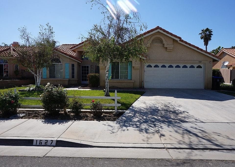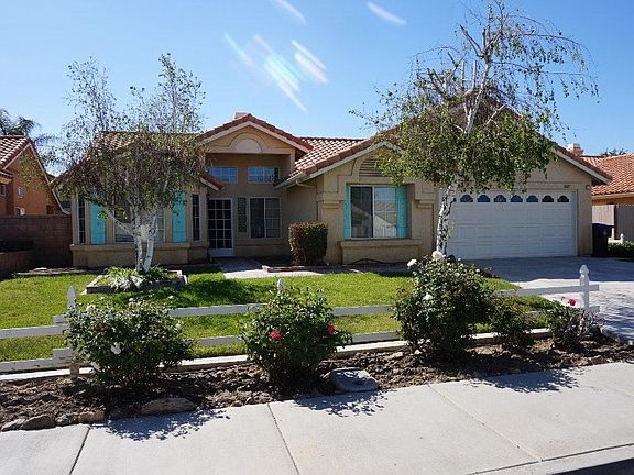 Fantastic 3 bedroom home in West Hemet! As you enter the home, to the immediate left is a room that can be used as a den/office, to the right as you enter is the formal dining room. The kitchen and family room are straight back. The family room features a fireplace. The kitchen is open and has a convenient center island and tile counters. The bedrooms are all good sized. The master bedroom has double mirrored closets and a door that leads to the backyard patio. The master bathroom has a separate sunken tub and shower stall, as well as double sinks. The backyard has a lovely covered patio and is the perfect spot to sit and relax on cool evenings. There is tile flooring throughout the house. The 2 car garage has a workshop bench and plenty of room for storage! Close to the Hemet Super Wal-Mart, West Valley High School and Harmony Elementary. Make this home a must see! Landscape maintenance is included with rent. Tenant is responsible for all utilities. NO PETS!