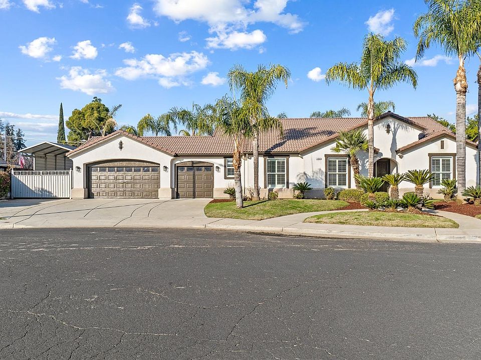 Situated in a neighborhood lined with pristine homes in Clovis, this home impresses with its lofty ceilings, muted tones and exceptional amenities. Delivering a quintessential Central Valley lifestyle, this four bedroom residence echoes Spanish influence. Inside, the layout is spacious, flowing with chestnut-hued hardwood floors. Fully integrated areas create the ideal venue for hosting gatherings, with the principal social space encompassing an elegant dining room, cozy family room with built-ins and magazine-worthy kitchen with massive island. Each bedroom is primed for a good night's sleep, with the primary retreat offering a walk-in closet and luxurybath. The backyard with lush grass, pergola covered patio and a freeform pool evokes a resort feeling. Vibrant surroundings dotted with towering palms wrap around the 2,288 sq ft home with a three car garage plus dedicated covered camper parking. Clovis preserves a small-town vibrancy epitomized by its schools, events and celebrations.