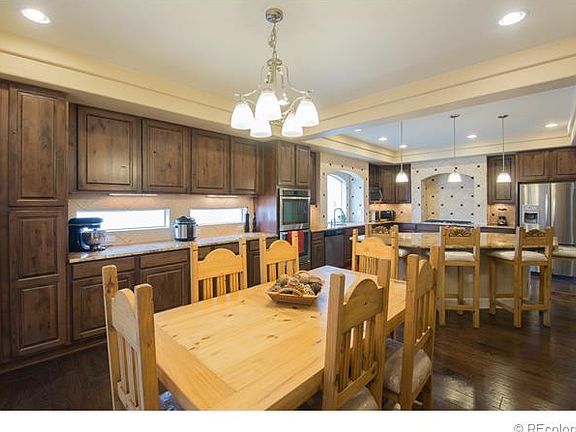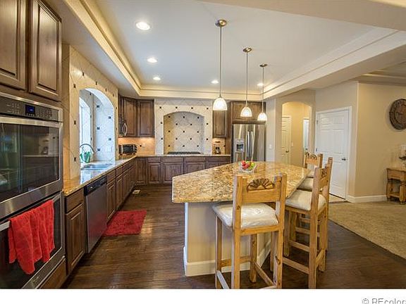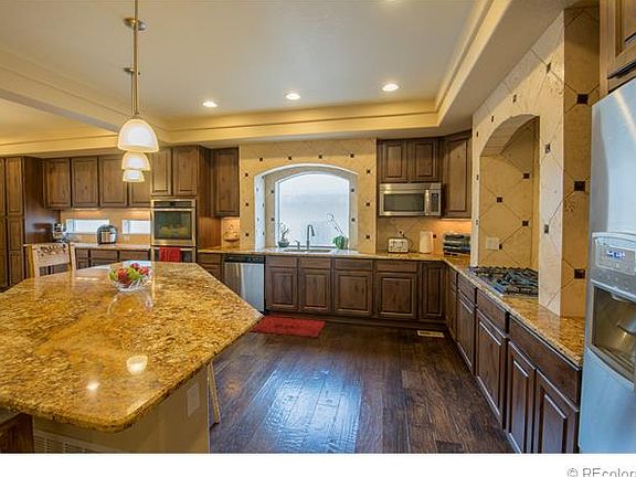 Captivating floor plan features stunning dream kitchen with stainless appliances including double oven, Kitchen Aid 5 burner gas cook top, exotic granite, distressed hard wood, eat in island and over 30 quality cabinets. Large upstairs bonus room with columns makes easy 4th bedroom conversion. Spectacular master bathroom with enormous walk in closet and over sized shower with bench. 3 car garage width with 2 bays and extra storage/workshop space. Central vacuum and surround sound technology package are just one of many extras. Most popular "Kendall" floor plan. Great exterior concrete patio and 100% usable, fenced grass yard. 2 blocks to Clear Sky Elementary, Bison Park, tennis and basketball courts and endless trails for hiking or mountain biking on the surrounding hills and open space. Unfinished basement is over 1,000 sq ft awaiting your vision with 9" ceilings. Quick-move and possession! Motivated Seller!!