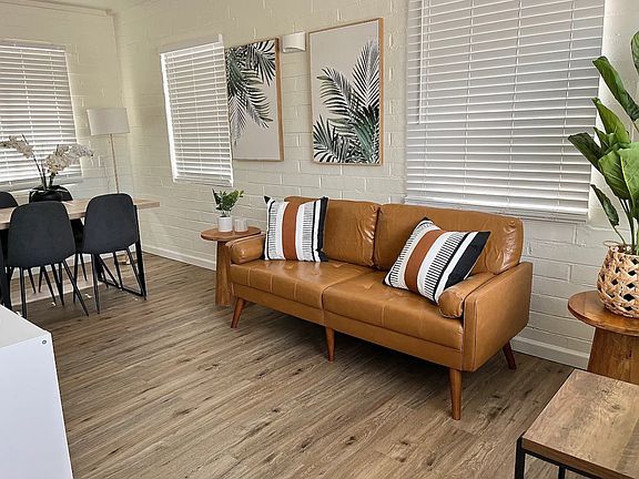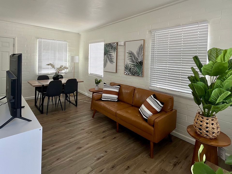 The natural lighting, brand new upgrades, and minimalist design create a high-end feel, while warm earthy tones and comfy furniture provide a relaxing environment for everyday casual living. In addition, multiple amenities are provided including a 55in smart TV with streaming capability, ample storage space, fully equipped kitchen, pantry staples, cleaning supplies, and starter toiletries to make your stay smooth and enjoyable.