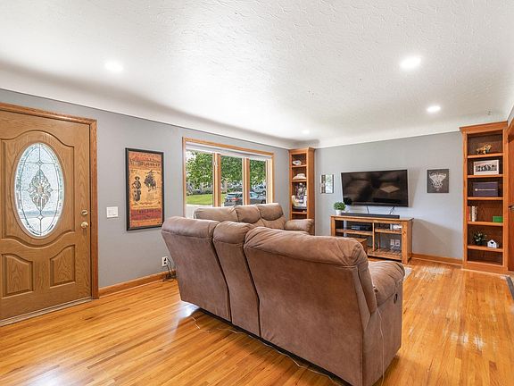 Welcome to this spacious and recently updated ranch-style home that's sure to impress! Step into the kitchen, where you'll find ample white cabinetry, new flooring, a gorgeous handcrafted island, and sleek stainless steel appliances. Cozy up at the island for a quick bite but enjoy entertaining friends and family in the designated dining area. The living room features original hardwood floors and cove ceilings, adding a touch of character to the space. With three bedrooms, including two with new carpet and ceiling fans, you'll have plenty of space to personalize and make your own. The remodeled full bathroom is a delightful bonus to find. The move-in ready main level allows for quick and easy settling. The basement holds incredible potential for customization. Imagine creating a family room where you can gather for movie nights and create lasting memories and updating the existing 3/4 bathroom. The lower level also has ample storage space and laundry area. Outside, you'll appreciate the updated concrete driveway (2016) and the oversized two-stall garage. The patio is a fantastic spot for outdoor relaxation and hosting gatherings. And let's not forget about the spacious yard, offering endless opportunities for gardening, play, or simply enjoying the great outdoors. This home comes with several notable updates, including solid core doors throughout and added insulation in the walls/attic in 2015. Not only will you love the comfort and style of this home, but it also comes with affordable utilities, making it a practical and cost-effective choice. Don't miss out on this fantastic opportunity to own a great starter home. Call today to schedule a viewing!