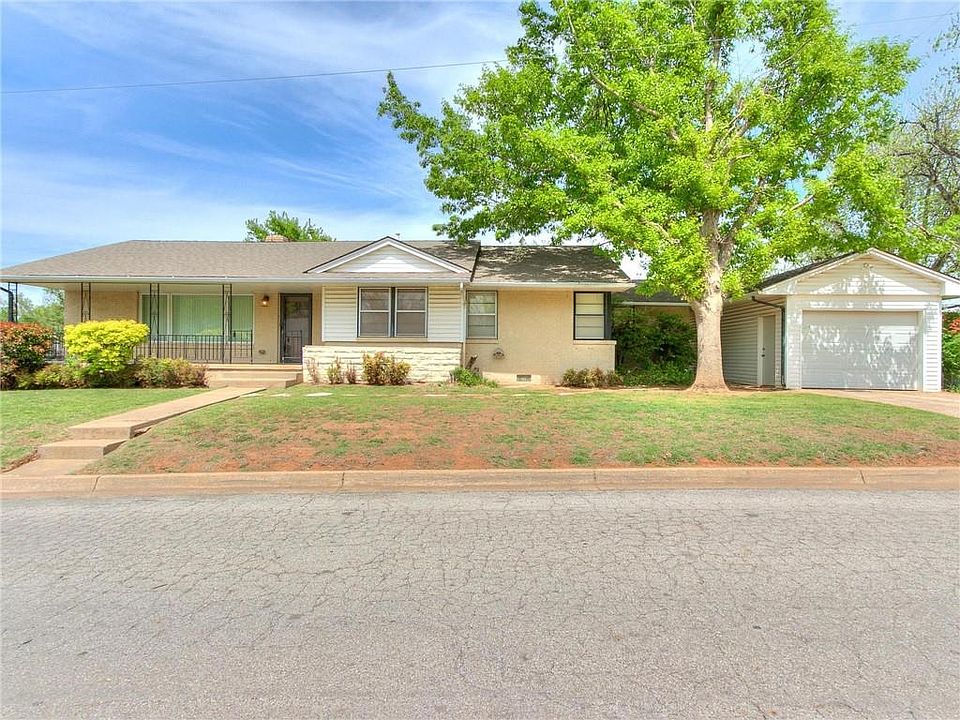 Large corner lot in the heart of Chickasha. This 3-bedroom, 2-bathroom home is just a few blocks from USAO. Features an oversized living area, solid wood kitchen cabinets, new kitchen sink, built in wall oven/microwave and a pergula in the backyard. 2 car garage and fenced backyard with over 1700 sq ft!