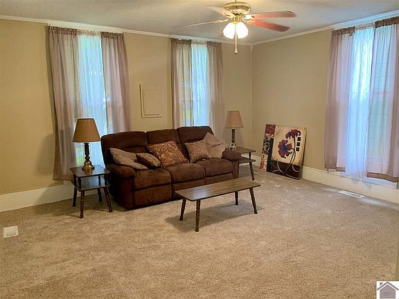 2 Bed 1 Bath home with detached garage. Nice kitchen cabinets, new carpet in 2020. Roof is 6 years old. Neutral paint, ceiling fans and covered porch. 24x24 garage.