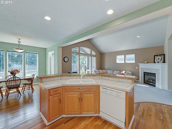 Open Sat 8/22 1:00-4:00pm. One level ranch. Open floor plan with vaulted ceilings. Absolutely beautiful home with shingled accents, outstanding stone work, front porch with pillars, arched windows, cozy fireplace and all in an excellent location. This home has high quality cabinets, wood floors and countertops. Wonderful landscaping with sprinklers, fenced, covered patio. Potential RV parking. Air conditioning. Don't miss this one!