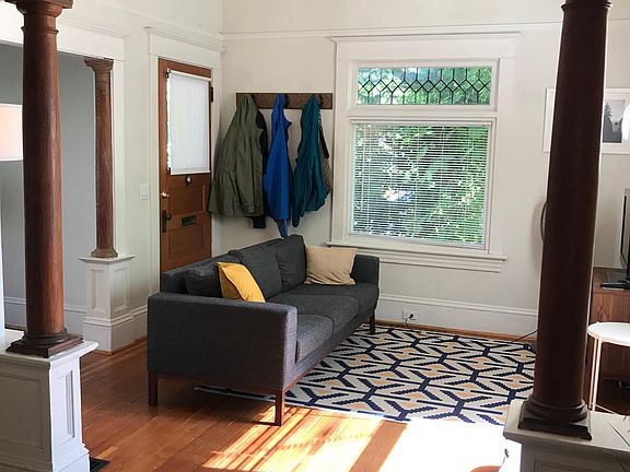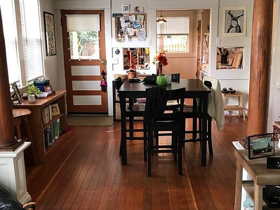 Charming Sellwood Bungalow 1627 A SE Tacoma Street Portland, Oregon $1995 per month This charming, turn of the century bungalow has been completely renovated inside and out by its architect/owner. Located on a wooded lot with off-street parking, this 1906 home is only blocks from parks, a pool, waterfront access, a golf course, shops, the Springwood Corridor Bike path, restaurants, famed Antique Row and New Seasons Market! This cozy home has one bedroom and one full bath with tub and shower. Its dining room and living room are washed in sunlight most of the day. Its front parlor or second living room can easily be converted into a second bedroom or office. There is plenty of storage in both the attic space and the full, dry basement complete with washer/dryer and forced air furnace. The kitchen contains maple cabinets with glass doors and appliances, including a microwave and dishwasher. Its bright and airy breakfast nook has a view of a 100 year old redwood tree and private deck. The renovation of this home includes all new electrical, plumbing, insulation, sheetrock, windows and refinished wood floors all the safety and convenience of the new with the character of the old! This lot is shared with a small detached Accessory Dwelling Unit (ADU). The ADU was designed and built by this property's architect/owner. CM ZONING allows live-work and limited commercial use . ideal for a graphic artist, architect, engineer, designer, agent, photographer, attorney, web-designer, naturopath, etc. LOCATION, LOCATION, LOCATION: This home is in a great location in Portland's beautiful Sellwood neighborhood. It is an easy commute to downtown, crossing the Willamette River on the Sellwood Bridge and an easy walk to the Light Rail Tacoma Station. This location also offers quick access to 99W and I 205 connections to the airport, Mt. Hood & Salem. TERMS: GOOD CREDIT RATING & REFERENCES FIRST & LAST MONTHS RENT DUE AT SIGNING SECURITY DEPOSIT NO SMOKING NO PETS The renter is responsible for utilities. First and last months rent and security deposit are due at signing. The driveway has room for 2 vehicles. This is a smoke free property! Small dogs ok.