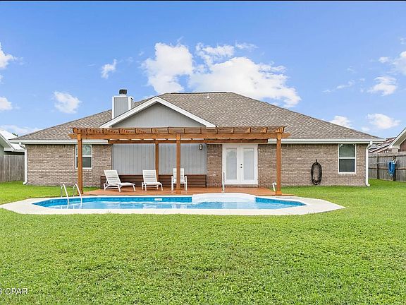 1627 Santa Anita Drive, a stunning home located in Lynn Haven, Florida. Nestled in a peaceful neighborhood, this exquisite property offers a perfect combination of beauty, functionality, and an unbeatable location. The heart of this home lies in its modern and well-appointed kitchen. Featuring stainless steel appliances, granite countertops, abundant cabinetry, and plenty of counter space. The main bedroom retreat is an oasis of tranquility. It offers a generous walk-in closet and an ensuite bathroom with a dual vanity, makeup counter and an oversized shower. This private sanctuary provides a peaceful escape at the end of a long day. Three additional bedrooms and a second full bathroom ensure comfort and privacy for family members or guests. As you step outside, you will be delighted by a sparkling in-ground pool and oversized back yard. The built in benches provide tons of convenient storage and the pergola provides a bit of shade from the Florida sun Beyond the stunning features of this home, its location is truly unbeatable. 1627 Santa Anita Drive is conveniently located near excellent schools, shopping centers, dining options, and recreational activities.