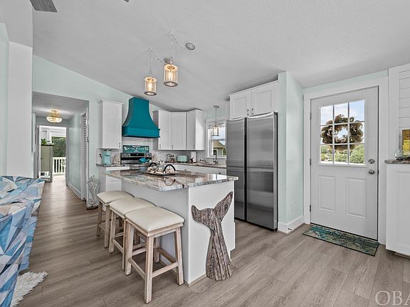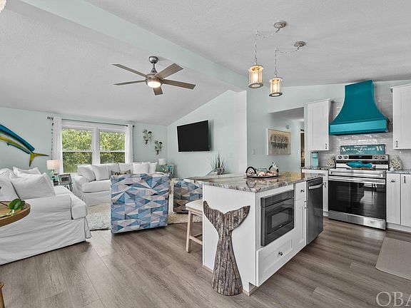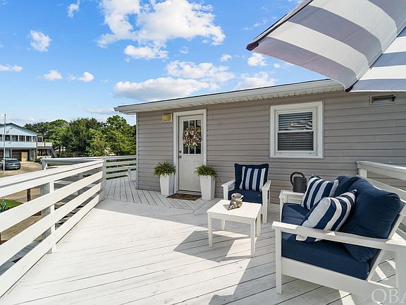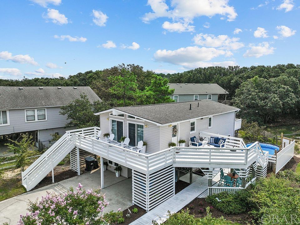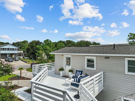 EASY TO SHOW! Located in the coveted First Flight Village subdivision on a quiet cul de sac off of First Street, this beautifully updated and well appointed home and is being sold fully FURNISHED and is near shopping, restaurants, schools and bike path to Wright Brothers Monument.  Enjoy the First Street Public Beach Access less than one mile away on the Atlantic Ocean! Complete with a NEW ROOF, Dare County records lists it as having 1704 sq ft with 4 bedrooms and 3 baths.  PERFECT for primary, vacation or investment property with divided separate living spaces! UPSTAIRS measures 1016 sq ft with 3 bedrooms, 2 bathrooms,  Living Room and kitchen.  UPGRADES include new sheetrock, paint, luxury vinyl plank flooring, HVAC, custom kitchen cabinets with corner SS lazy susan, granite countertops,  stainless steel finish appliances (new dishwasher, refrigerator and range), custom wood hood cover, custom tile showers with glass doors, new vanities and stack washer and dryer tucked behind bathroom door in en-suite.  The spacious sun decks were updated with new rails and topped with a fresh coat of paint. DOWNSTAIRS is a fully furnished,  independent in-law suite with separate entrance that measures 726 sq ft of permitted space added in 2005. Complete with its own living room and full kitchen, this 1 Bedroom, 1 Bath area is perfect for guests, tenants or home office.   Upgrades include new kitchen sink, countertop, refrigerator bathroom vanity and two PTAC units for heating and cooling.  Easy to clean luxury vinyl plank and tile flooring is an added bonus.   The deck extends over several small outdoor areas on ground level making perfect entertainment niches.  Rinse off in the outdoor shower before hopping in the above ground 4 foot deep pool tucked behind a privacy fence shielded from the road. Fresh turf and irrigation (connected to municipal water) gracefully frames the property and the backyard has mature fruit trees.  Ground level open storage area is perfect for beach equipment and bikes and the enclosed storage room provides additional storage with door and also serves to house the hot water heater. Rental projections are $60k-$70k as the two spaces could be rented separately with possible divide of $40k-$45k upstairs and $25k-$30k downstairs.  Per rental company, some of the KDH Westside 3 bedrooms have history of $60k!  This is massive potential if used as investment property!