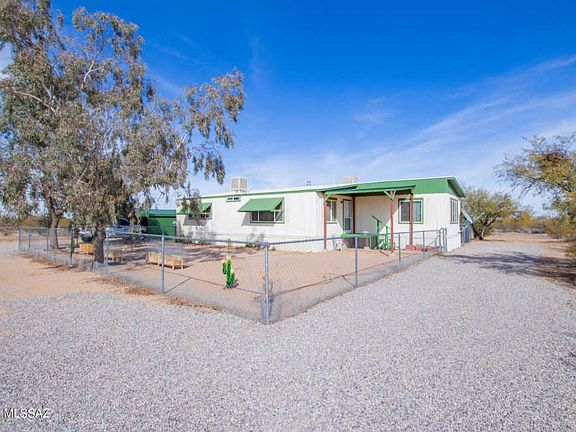Great Opportunity to own 5 plus acres of Horse Property surrounded by breathtaking Mountain views! Brand new HVAC installed last year, All new low E vinyl windows, 2 car covered carport. Covered front deck & custom awnings to protect windows from the sun. Above ground pool, storage shed and screened in east facing Arizona Room is perfect for desert nights. Interior laundry area. 2 Large bedrooms w/2 baths. The horses will love all the land to graze. Very private & peaceful setting.
