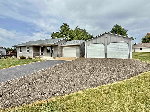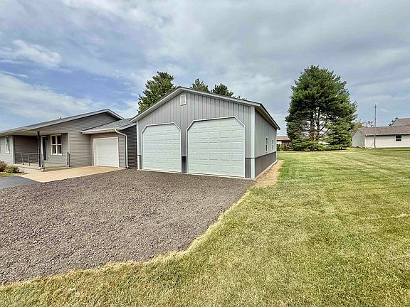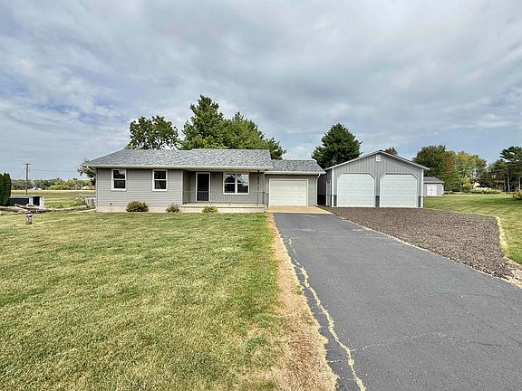 COMPLETELY REMODELED RANCH IN WINNEBAGO SCHOOL DISTRICT! This beautifully updated 2 bedroom, 1 bath home is situated on a peaceful 1/2-acre lot. Open-concept layout with vaulted ceilings, recessed lights, fresh paint and all new trim/doors, lighting, plus durable vinyl plank flooring throughout. The eat-in kitchen is a showstopper with trendy green painted cabinetry paired with new stainless-steel appliances, Quartz countertops and plenty of prep space for everyday living or entertaining. Both bedrooms have Hunter ceiling fans + recessed lighting. The brand-new bathroom features a fresh, clean design with new tub/surround, fixtures and a white vanity with a Quartz top. The full basement is ready to finish to add additional living space. Enjoy outdoor living on the spacious newer 32' x 16' concrete patio. Car enthusiasts, hobbyists, or anyone needing storage will love the incredible 24' x 35' fully insulated outbuilding—brand new in 2025—with 10-foot ceilings and two oversized doors (9' high x 10' wide). Other updates include new roof and siding in 2024 and furnace in 2022, ensuring years of worry-free living. County taxes & close to Hwy 20. *Some photos are virtually staged