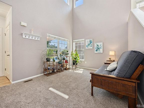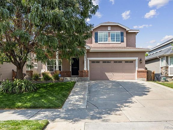 This stunning home offers 4 bedrooms and 3.5 bathrooms, with ample space for comfortable living. Enjoy the main level featuring an updated kitchen with granite countertops, gas stove, and stainless steel appliances. The cozy living room features high ceilings and a gas fireplace. From the dining room you can view of the private back yard. The laundry room is on the main level and comes with a newer washer & dryer. The 2 car garage offers shelter for your cars, storage space, and a handy tool bench. Upstairs, retreat to the primary suite complete with a spa-like ensuite bathroom and a walk-in closet. Two additional bedrooms and a full bathroom upstairs provide plenty of space for a variety of living situations. Stay cool throughout the home with a high efficiency AC unit (2019), and a whole house fan. The finished basement offers endless possibilities with a bedroom, full bathroom, and flex room, perfect for a home office, gym, or entertainment area. Included are multiple smart features such as a nest thermostat, smart lighting, and smart sprinklers. Step outside to your private backyard oasis, ideal for relaxation, gardening, or entertaining. Take a short walk to the HOA pool for added enjoyment. Award winning Buffalo Run Golf Course is in the neighborhood, and commuting to flights at DIA couldn't be more convenient.