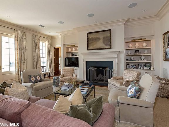 Magnificent estate in historic Point Clear located on Mobile Bay. Classic architectural design by renowned architect, Lea Verneille and expertly built by Scott Norman. This bay front estate offers the utmost for waterfront living in the perfect location. Situated on over an acre, the main house boasts 5 bedrooms, 5 and half bathrooms, 3 fireplaces. large bay front porch and open floor plan. Guest house adds an additional 1730 square feet with an additional bedroom , bathroom and two large recreation rooms. The wharf is simply like no other. Top quality construction with multiple boat lifts, large covered entertainment areas, cooking areas and sleeping loft. Now is the time to make this one of a kind estate your home.