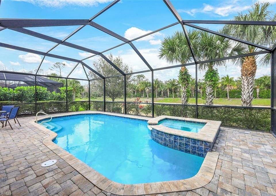 - Pool features: In Ground, Equipment Stays, Gas Heat, Salt Water, Screen Enclosure, Self Cleaning