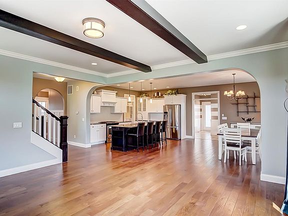 First Right Contingency. LUXURY LIVING This magnificent craftsman style residence is showcased in the Pointe of Twin Eagles and is awaiting its new owner! Spacious, yet intimate rooms create the perfect ambiance for entertaining with an open concept living room adorned with large picture windows to bring the wonderful backyard views, wood beamed ceiling and a cozy gas log fireplace with surrounding built-ins. Executive den just off the foyer makes a wonderful home office or private sitting area. Beautiful chefs kitchen with granite topped counters, LARGE center island with breakfast bar, professional appliances, walk in pantry and modern white cabinetry and tile backsplash, which is all open to the elegant dining space. Main level laundry room with built-in locker system. The upper level encompasses 4 large bedrooms and 3 full baths. The master suite features rustic wood beam details and a private master bath with granite double vanity, walk-in tile shower, classic claw foot tub and walk-in closet with Closet Tames shelving system. A fully finished lower level featuring a spacious family/rec room with custom wet bar and additional room with full bath. Moving to the exterior of the home, the stamped concrete patio features a built-in firepit, play set that remains and covered patio with TV hookups. COME AND SEE ALL THE EXTRAS WE DID NOT MENTION!