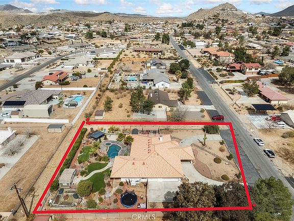 This Immaculate home located in the desirable Desert Knolls area of Apple Valley is truly an Entertainers Delight! How about an ASSUMABLE VA Loan at 3.5% interest! Balance is $437,000 with a $2,688/mo payment. The owner spared no expense in creating a paradise in the backyard of this home. And it's all only a few years new! Beautiful pool, spa, pool grotto with a slide, and a gazebo complete with electricity, ceiling fan, and large outdoor fireplace. Also enjoy your own private putting green and your relax in your own backyard beach area! Professional backyard landscaping includes low voltage lighting that brings the environment to life after dark! You must see it to believe it! There is ample fenced RV parking on BOTH sides of the home and the property has RV Hookups, a three-car oversized garage (834 sq. ft.) and a porte cochere for covered parking at the front door. Spacious bedrooms include ceiling fans, newer carpeting, and two of the four bedrooms offer direct access to the outdoor oasis! Master Bedroom has two closets and Master Bath offers separate walk-in shower and jetted garden tub as well as double sinks and granite countertops. Bathrooms are both upgraded to add a touch of elegance. Spacious Kitchen with loads of storage, wrap-around breakfast bar, upgraded stainless steel microwave and oven/stove, granite countertops and backsplashes, and even recessed lighting. Gaze out on your backyard oasis from the breakfast nook. Sit by the 2-way fireplace and enjoy the fire from either the living room or family room. Enjoy the massive covered patio with electricity and lighting that spans almost the entire rear of the home. This elegant split floorplan home offers just about all of the amenities anyone could ask for! Truly a Must See!