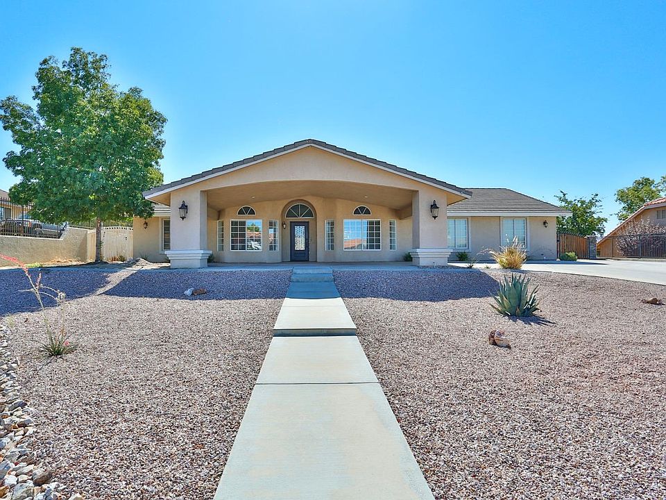 Room to Roam in this completely remodeled 4 bedroom 3 bath home in Upper Desert Knolls. Enter into this open, split floor plan, perfect for every size family. Beautiful bright kitchen that every chef would love to cook in. Formal dining and dinette areas. Wood stove to keep things cozy, 2 AC units and ducted swamp cooler to keep things cool. Large master suite offering a dual fireplace and master bath that says just relax. Bonus office or den and completely split floor plan with additional ensuite for guests and or in-laws quarters. Now lets enjoy everyday in the fully landscaped backyard. Built in BBQ, brand new pool and spa, fire pit with sitting, covered patio, gated RV parking area and additional detached 3 car garage. This home is truly a entertainers delight and still has the tranquil feeling of just being home.