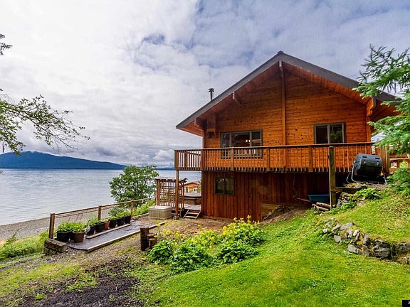 Amazing waterfront home located on one of Juneau's most sought after shorelines, Point Lena Beach! Drive up to this beautiful 4 bed, 3 bath cedar home and step out onto your deck, taking in breath taking 180 degrees views of Stephens Passage! Facing due South, this 3/4 acre lot is ideal for gardening or just taking in the rays on a sunny afternoon! This home has the following features: Main house has 3 bed/2 baths and a fabulous guest suite with 1 bed and 1 bath. Home has remodeled baths, in floor radiant heat, new flooring, new interior paint, wood stove, gas fireplace (in guest suite), an amazing wine cellar and views from all levels. Property also boasts new decking, 3 levels of decks, propane plumbed throughout, paved driveway, newly stained exterior, large 4 car carport with shop, chicken coop, potting shed, a large boat house, tiered gardening and much more! The drive up house sits up high, just below road level and has wide gentle path down to a fantastic yard at the beach level. This is a once in a lifetime property...call today for a showing of your own and make your waterfront dream a reality!