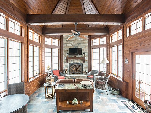 Absolutely beautiful inside and out, this is one not to miss! From the minute you pull in the driveway you will fall in love with the scenic lot and all of the details in this meticulously maintained, custom built home. The front porch welcomes you with detailed archways and a craftsmen wood door. A two story foyer opens to the formal dining room and office with French doors. Entertaining is easy with the open floor plan including a grand two story great room with stone fireplace, gourmet kitchen with cherry cabinets, granite counters and a cozy hearth room with tile floor and second gas fireplace. The highlight of the first floor is the addition of the bright sun room w/stone fireplace and walls of windows which walks out to the paver patio and park-like yard. The spacious first floor master suite features a bayed sitting area, glamour bath with double sinks, Corian counters, soaking tub, large shower and oversized walk in closet. Two bedrooms plus a loft with room for guests on the second floor share a full bath. The lower level recreation room is nicely finished with daylight windows, kitchenette, full bath and plenty of storage. Other features include first floor laundry room and half bath, invisible pet fence, 3 car garage, Anderson casement windows with ultra-violet barrier glass, newly sided in 2015. Located in the top rated Chagrin Falls School District, close to shopping, dining, parks & entertainment, this house has it all and is definitely one to see in person!