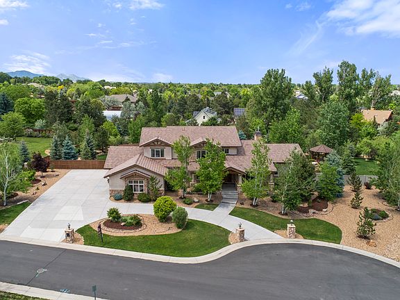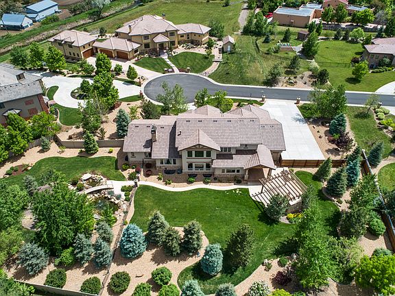 Welcome to this exquisite custom home-one of Hill Estates finest-on a private one-acre cul-de-sac Lot with views of North Table Mtn. Perfect for elegant entertaining and everyday life. Enter the 2-story foyer and living space sunlit through double height windows. Well executed floorplan includes a main flr luxurious mstr suite w/a sep entry, vaulted ceiling, lg sep walk-in closets, dbl-sided fireplace, along with an enormous mstr bath of granite, travertine, sep vanities, soaking tub, hidden walk-in shower. Enjoy the gourmet ktch w/" Crystal" custom cabinetry, 2 slab granite islands, 6-burner gas stove w/wd hood, high end Ss Appls, walk-in pantry. Glass drs open onto a custom built flagstone patio, pergola, fireplace, built-in grill, pond w/fountain, bridge, gazebo, artistic designed fence, mature trees. 3 upper flr " mini-suites" (bd & bath). Lower level fun w/home theater, bar, great and game rm. Along with 2 bdrms, bath, and storage Rm. Oversized 4 Car Garage. Half Circle Driveway.