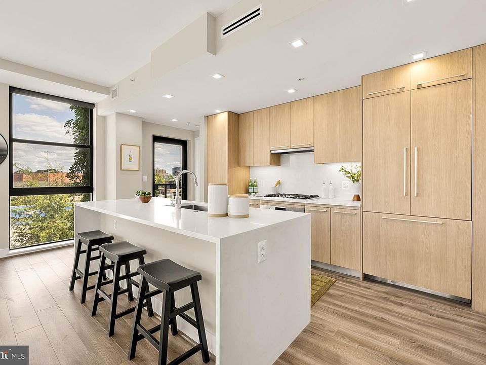 Residence #309 at 11Park is a modern, CORNER unit in the heart of Logan Circle. With over 1,000 SF, this 2 BR + 2 BA features a functional layout with a large open living + dining + kitchen. The luxurious kitchen features high-end Porcelanosa cabinetry, paneled Bosch appliances, quartz countertops and a large island. Floor-to-ceiling windows provide abundant natural light and the private balcony allows for indoor-outdoor entertaining. The primary suite features Eastern exposures, a large walk-in closet and spa-inspired ensuite bathroom with a double vanity. The second bedroom is on the opposite wing, perfect for guests, a roommate, or home office. This unit comes with one garage parking space (P-14) below the building. 11Park is an amenity rich, professionally managed building with a rooftop terrace, fitness center and resident lounge. Perfectly situated between all the bars, restaurants and shopping of 14th and U Street. Walkable to Whole Foods, Trader Joe’s and Le Dip - what more could you ask for! Original developer measurement was 1,200 SF, tax record is 1,033 - assumed to be somewhere between.