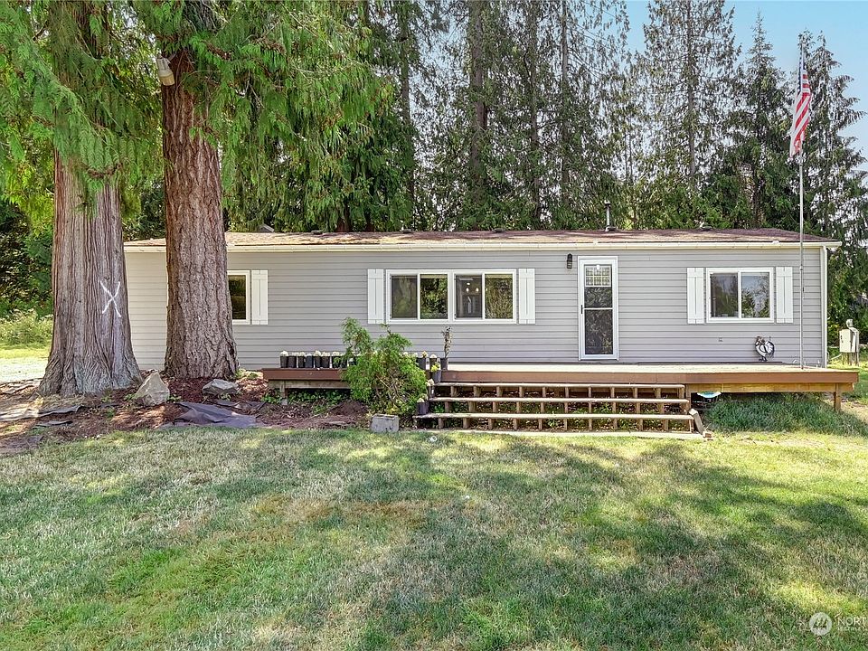 Come enjoy the solitude of this upgraded 3 bedroom 2 bath home situated on 2.25+ private acres. Features include open concept great room w/vaulted ceiling, ceiling fan, new pellet stove, kitchen w/quartz counters & center island, stainless steel appliances, dining area, master suite w/large bathroom, 2 guest bedrooms, full bath, laundry and lovely deck overlooking property. There is a detached 600 s/f outbuilding/shop, 2 sheds and RV parking. New wood for deck being installed next week. Great location minutes to shopping & I-5. Lakewood School District.