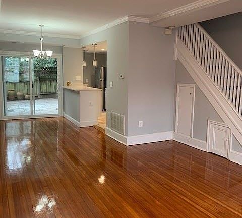 The Charm that Defines Georgetown is Captured in this Townhome 1628 33rd Street, NW - Small pristine 2 bedroom, 2 bath townhouse has been renovated to perfection, and is ready for March move in! From the landscaped front yard, enter main level with bright open space offering living, dining rooms and kitchen with lighted breakfast bar. Appliances include refrigerator, gas range, dishwasher, and washer & dryer. Sliding glass doors open to a spacious flagstone patio with plantings and a storage closet. This inviting outdoor space expands the comfort of the 1088 sq ft interior. Hardwood floors and built-in bookshelves add character to the living, dining areas, and bedrooms. The upper level has a front bedroom with ceiling fan/light, and ensuite bath with shower. The rear bedroom with ceiling fan/ light overlooks the landscaped patio. A white and slate-colored hall bath with tub completes this level. Convenient location is steps from the heart of Georgetown, Starbucks, and the energy and convenience of shops and restaurants on Wisconsin Avenue. Monthly rent is $3500. plus utilities. Security deposit equals 1 month rent. Application requires a minimum credit score of 650, and cost $75/ person. Apply at www.chatelrealestate.com. Open Saturday *Feb 9th 11:00-12:00,* or by appt thereafter. Any inquiries please email dtchatel@aol.com No Pets Allowed (RLNE4691100)