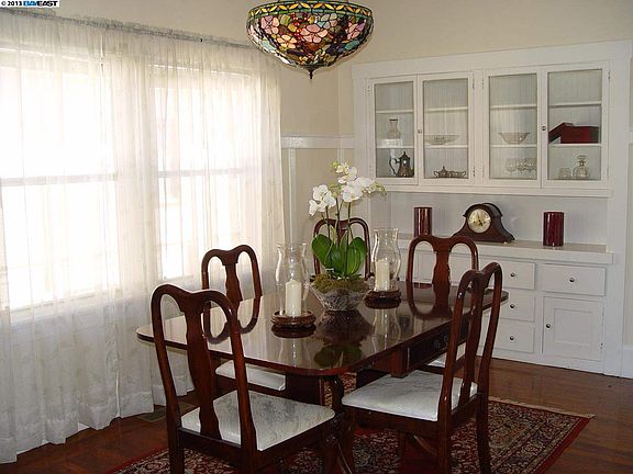 Not a drive-by a must see!Sunny & Charming bungalow in Alamedas East End.Hardwood flrs in liv.rm w/fireplace,formal din.w/built in hutch.Kitchen Corian counters,wine chiller,Wedgewood stove.Pristine backyard,on-demand water heater.Close to downtown. Unique shops, Eateries & Historic Theater.