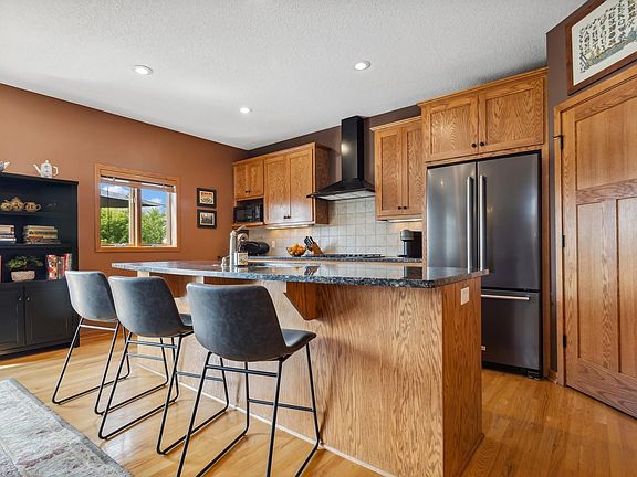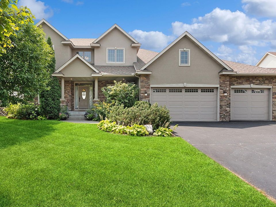 Spacious, inviting, and well-maintained, this one-owner home has it all! Open floor plan, beautiful hardwood floors, and fresh new carpeting. The gourmet kitchen features a center island, granite countertops, walk-in pantry, Bosch and Kitchenaid appliances. Step onto your brand new deck that overlooks the fully fenced, private yard. A study/home office, powder room, and first-floor laundry/mud room complete the main level. The upper-level features 4 generous-sized bedrooms, including a primary suite with walk-in closet and ensuite bathroom with separate jetted tub and shower. The lower-level walkout features a large recreation room with 2nd fireplace, beverage station, a fifth bedroom, and a three-quarter bathroom. A large utility room has lots of room for workout equipment and storage. Footsteps away, a neighborhood path leads to Rice Creek Chain of Lakes Park Reserve, where you can enjoy everything outdoors! Do not miss this opportunity to own this exceptional home!