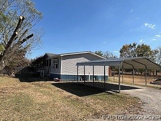 Double wide on 3+ acres m/l fenced. Some trees, small creek, very private, sits back off the paved rd. East side of Skiatook, so easy access to Hwy 75. 3 Bdrms, 2 Bths, large kitchen, laundry room, split bedroom plan, horses & cattle permitted. Central Heat and Air don't work.