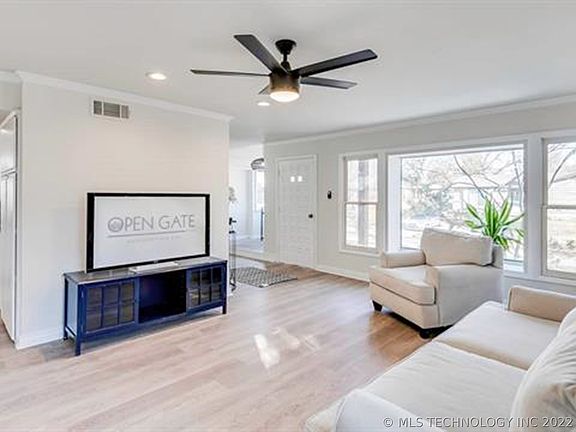 Updated-Unique home centrally located near Hwy access, Riverside, and Heller Park. Features 2 living rooms with open layout. 2 Pantries and interior large laundry room. True 3 bedroom w/ 2 full bath plus space for office or second dining. Hallway bath features double vanities. New designer finishes throughout (Granite, Paint, Flooring, Tile, Lighting, Etc). New SS appliances & HW Tank. Large backyard patio. Fantastic natural lighting. Truly move in ready!