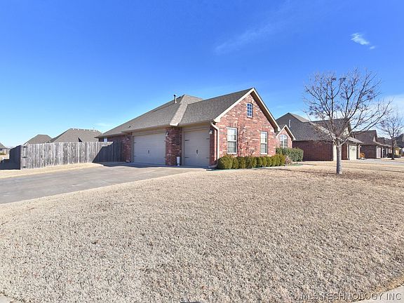 Nicely-appointed & move in ready! 4 bedroom, 1 story Broken Arrow home: Siting on a generous corner lot, the side-entry 3-car garage maximizes curb appeal. A welcoming entry opens to a spacious, open plan living room & Island kitchen. Ample raised-panel hardwood cabinetry & plenty of granite counter space is a chef's delight! This great family floorplan features a laundry/utility room that connects thru master to hallway for ease of living. Master bedroom also features large winter/summer walk in closet & double-trayed ceiling. Two other bedrooms are down the single hall, and a 4th bedroom near entry (could be & currently used as office). The fully fenced backyard, offers an in-ground tornado shelter as well as covered back patio with TV.