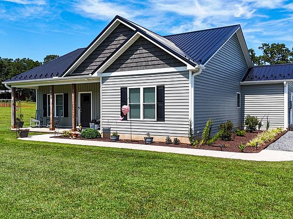 Back on the market at no fault of the seller! Welcome to Goat Island Rd., a beautifully crafted, single-level home built in 2023 and nestled on a peaceful 2.7-acre lot. This move-in-ready property features an open-concept layout with spacious living areas, 9-foot ceilings, and a light-filled interior. The heart of the home is anchored by a custom-built gas-log fireplace built this year. The kitchen boasts granite countertops, soft-close cabinetry, and stainless steel appliances. The primary suite includes a double vanity and walk-in shower, while two additional bedrooms share a hall bath. Outside, the showstopper is an incredible detached two-car garage built in 2024 (35'x24'), complete with two lean-to additions and carport parking-ideal for vehicles, equipment, or hobby space. This property offers low-maintenance living in a serene setting, and just a short drive to town of Altavista. Whether you're looking for your forever home or a peaceful retreat, this one checks all the boxes!