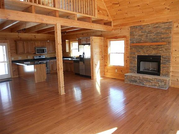 New Construction, never lived in Rustic Log Cabin, with all the interior amenities the discriminating Buyer is looking for. Wood Floors, vaulted/beamed ceiling, wood burning fireplace, open kitchen and floor plan. Master on the first level with a large master bath and convenient laundry room right on the first level. Upper level has 2 spacious bedrooms, shared bath, and an ample loft area for additional sleeping area, office or family space. Upper Front bedroom has a covered sitting porch to enjoy the view.