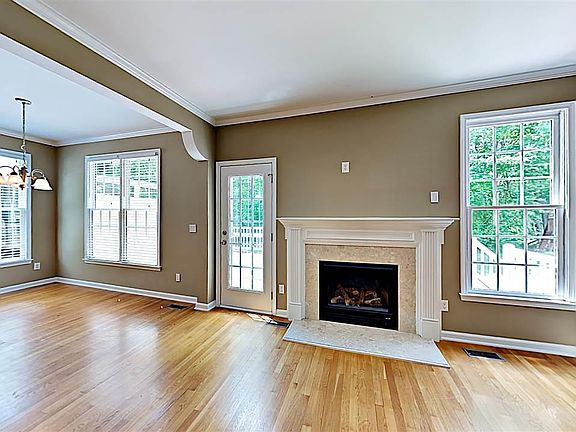 Comfortable living in the heart of Wake Forest! Gorgeous 3 bedroom, 2.5 bathroom home features formal dining room w/wainscoting, unique architectural details, hardwood floors, & living room with gas FP. Kitchen includes dining nook, breakfast bar, & SS Appliances. HUGE deck overlooks beautiful creek, loft/bonus area, sep laundry room w/large closet & a 3rd floor walk up attic w/half bath that is almost finished! New carpet & paint! Close to shopping, restaurants and schools."