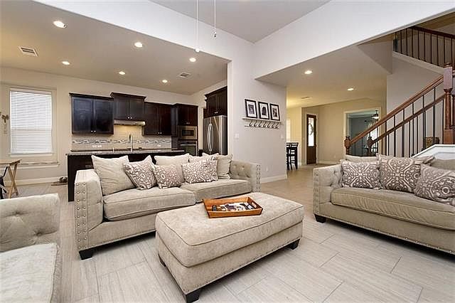 RARE Find: No house behind you and Giant Oaks front/back! Master suite PLUS another bedroom/full bath down. No 2nd story over master=Quiet Retreat! Game room + 2 beds 1 bath up. Upgrades: 3 CAR GARAGE, tile in dining/living/kitchen/breakfast/hallway/patio; wood in study. Ceiling fans throughout+patio. 7 miles of trails + resort style pool. DON'T MISS THIS ONE!